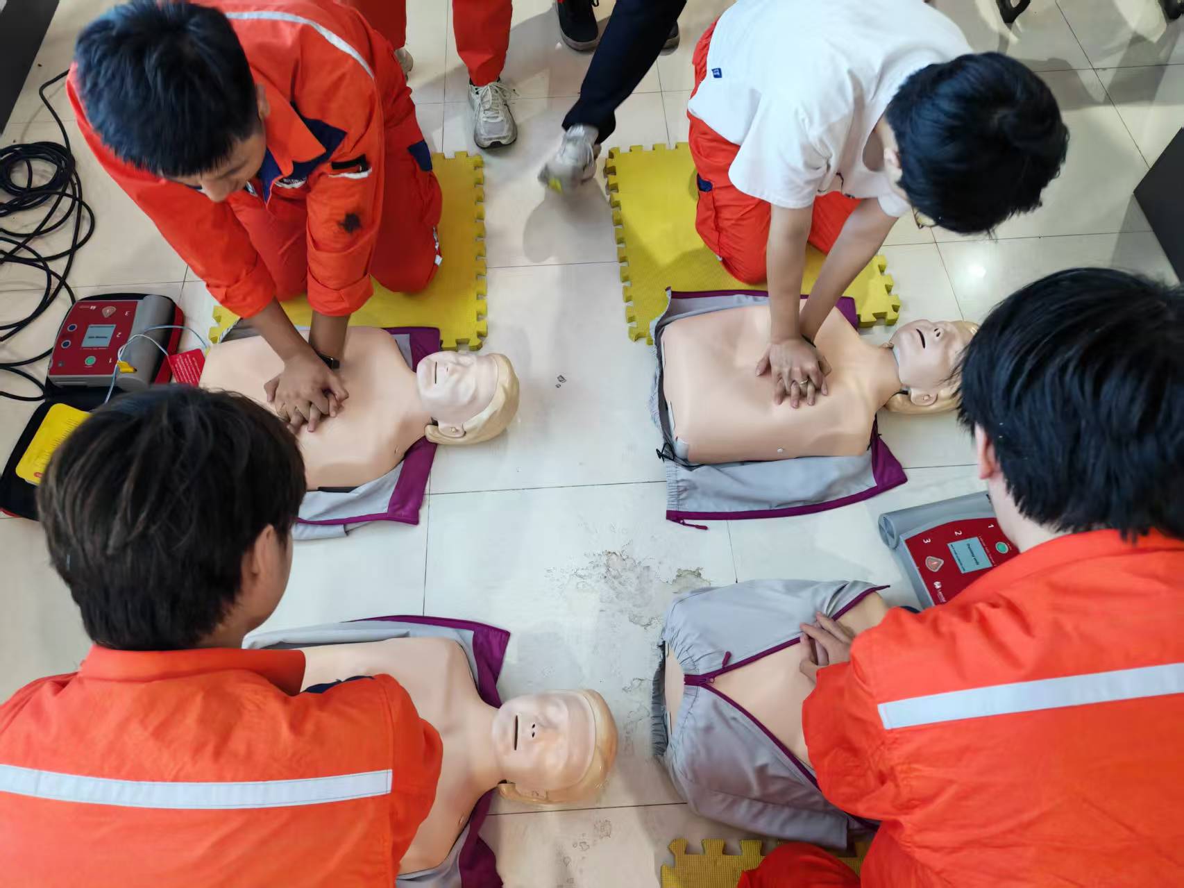 理论授课后,参训学员在讲师带领下开展沉浸式实操演练。借助模拟教具,大家分组练习各项急救技术,准确掌握操作要领。现场互动积极、氛围热烈,讲师逐一指导、规范动作,确保每位学员学到位、会操作。